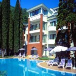A complex of comfortable villas built in 2001-2002 - 137 rooms including 37 deluxe rooms, 4 two-level suites, 16 singles and 84 doubles. Total number of guests - 315. All rooms are fully furnished and equipped with satellite TV and air conditioning. An old park of 15 acres, open-air hated pools (fresh water), tennis court, table tennis, billiards, restaurants, sauna, gym, mini market, cinema, beauty parlor and barbers, parking, rail and air tickets booking, excursions. Medical services
